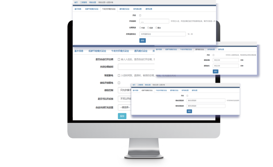 對(duì)于已經入住的(de)客房(fáng),可(kě)在某個(gè)時(shí)間(jiān)點對(duì)房(fáng) 間(jiān)空(kōng)調風(fēng)速自(zì)動調整為(wèi) 設置值,用(yòng)于人(rén)性化(huà)管理(lǐ)。