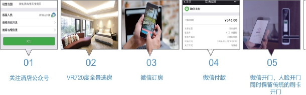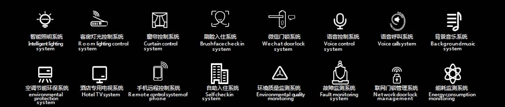 1、賓客可(kě)通(tōng)過微(wēi)信實現(xiàn)選房(fáng)、訂房(fáng)、開(kāi)鎖、控制(zhì)客房(fáng)設備、點餐、呼叫服務、續房(←fáng)和(hé)退房(fáng)等功能(néng)。